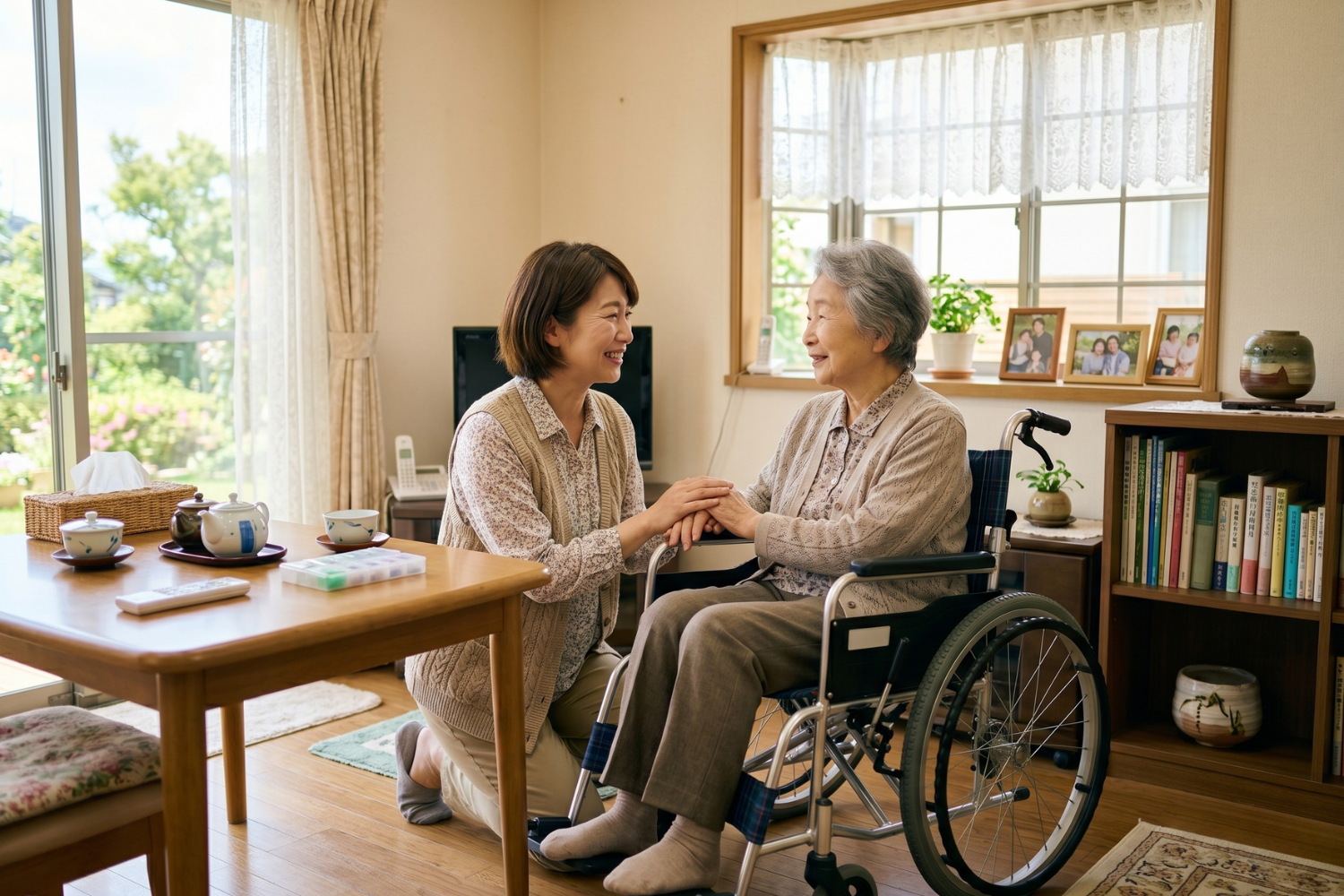 でも実際には、介護者が心にゆとりを持ち、笑顔でいられることが、ご家族にとって一番の安心です。 無理をして共倒れになったり、関係が苦しくなったりするよりも、適切な距離と支援を保つことで、お互いにやさしく向き合える時間が増えることもたくさんあります。